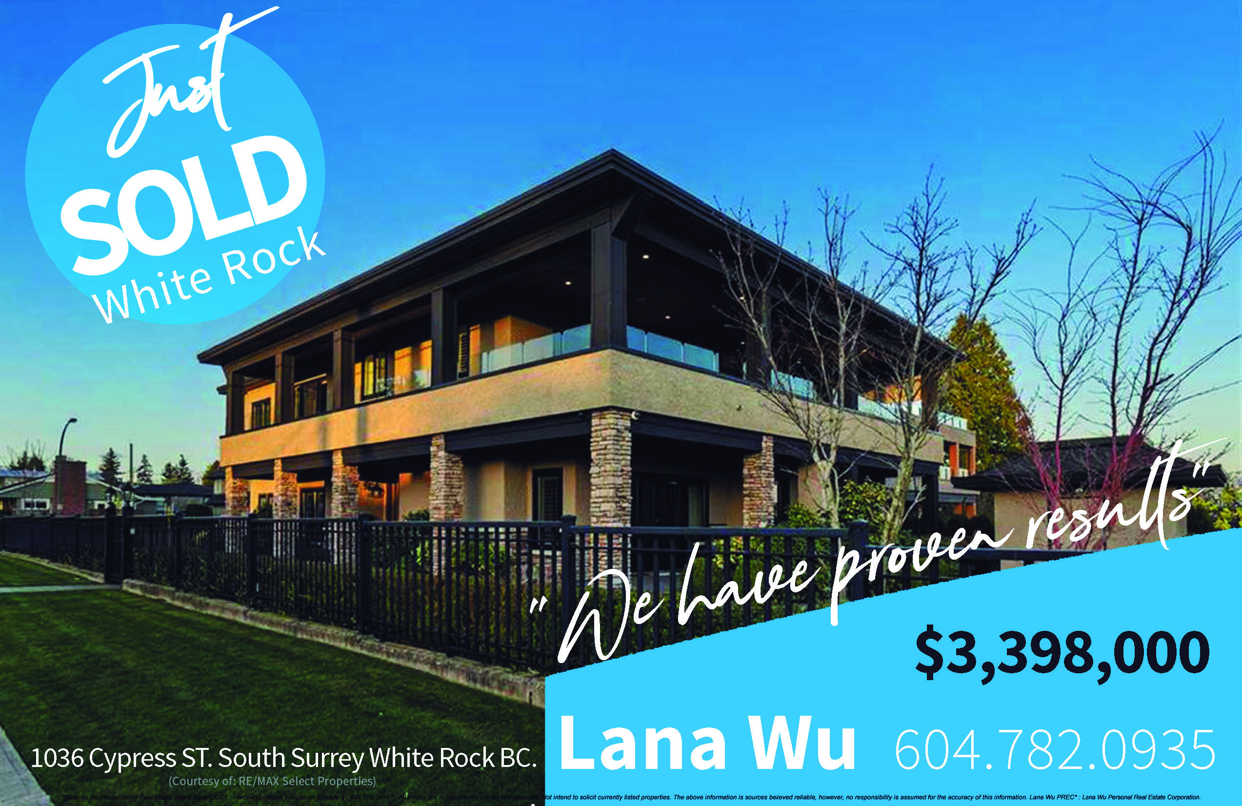 "Lana was very knowledgeable and knows the area very well. Prior to listing our house, lana gave us great advice about when to list our home and how to be prepared for listing at any time. We are so thankful for lana and how easy she made the process of selling our house. Youwill not find a better realtor than her in the South Surrey/White Rock!"
